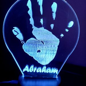 Lámpara grabada con láser en metacrilato transparente.